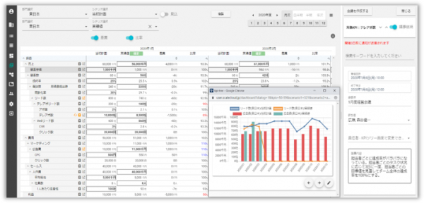 KPIの計画を立てることでPLやCFが自動作成されます。また、事業全体の計画達成に必要な各KPIの目標値が可視化されます。