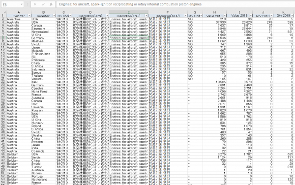 貿易商社やグローバル企業でエンジンの輸出入に関わっている方や、シンクタンクや政府機関において、同品目動向を調査している方などに最適のデータベースです。いつ、どの国とどの国で、どんなモノが、いかほど取引されたのか?平均単価も含むそのような数字は、利益に直結するインテリジェンスです。エンジンをめぐる海外ビジネスに携わる方には必須の武器となります。論より数字、勘より統計です。統計学を用いたデータサイエンスにも用いることができます。エンジンに関する貿易データセットが丸ごと入手できます。