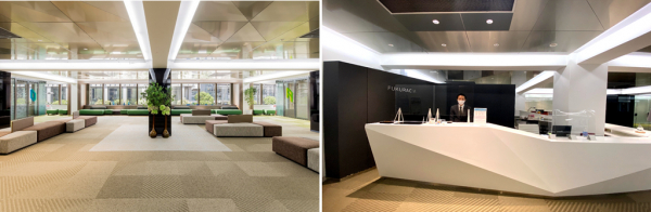 左)フクラシア八重洲ロビースペース 右)フクラシアでは受付スタッフが常駐