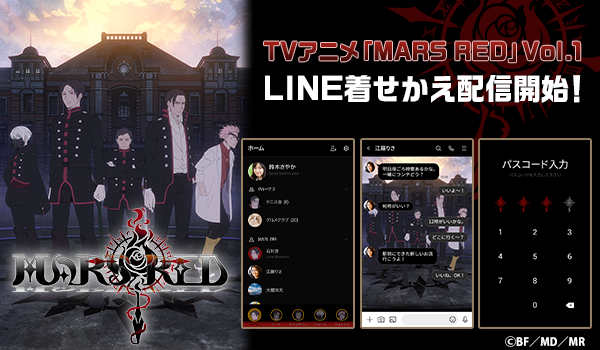 アニメ史上初!大人気音楽朗読劇からTVアニメ化となった事で話題の作品。TVアニメ「MARS RED」のLINE着せかえがインクルーズより新登場!