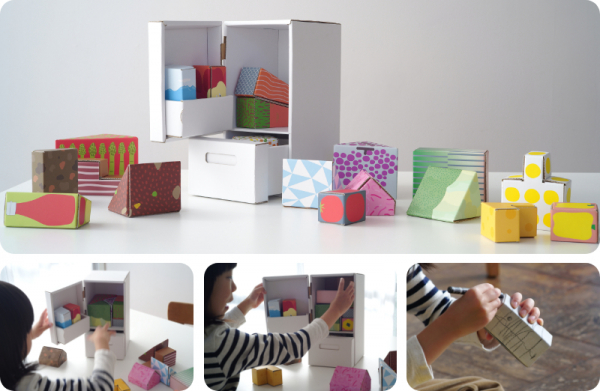 まずは組み立てるところから、あそびがはじまります。 各パーツをシートからはずしたら、折り目にあわせて折っていくだけ。パズルのほかにも、おままごとやお店屋さんごっこでも大活躍!おもてと裏をひっくり返して、自分だけのオリジナルピースがつくれたりと、子どもならではの発想で、いろいろなあそびかたを発見できるかもしれません。