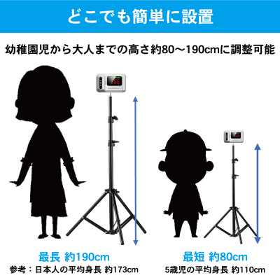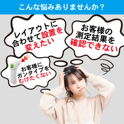 お客様とスタッフどちらも確認できる!デュアルモニター式の非接触温度計「温度はかろう前後三脚セット」miraiON