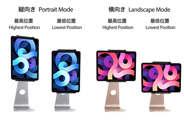 * 上下スライド&ロックでiPadを最適な位置にスピーディにセット、シンプルで面倒な操作が一切ありません。