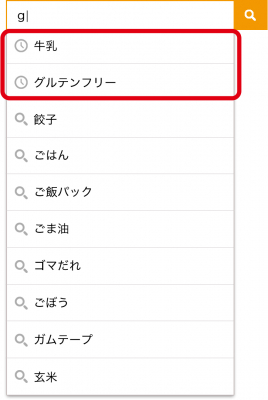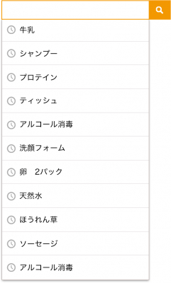 検索窓にキーワード入力を始める前に(キーワードが空の状態)、過去に検索したキーワード履歴を一覧表示する機能です。最新のキーワード順に表示されるため、タップするだけで検索が実行できます。