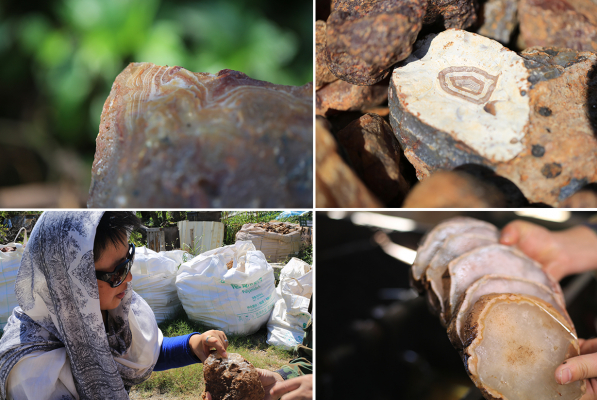 メノウは、深海で1億年の時を経て、地殻変動や火山の噴火活動などによって形成された美しい宝石です。そして、「時の印」は高級木材として知られる紫檀を選りすぐって使用しました。木目がきめ細やかで、温度による影響を受けにくく、安定性が高いという特徴があります。