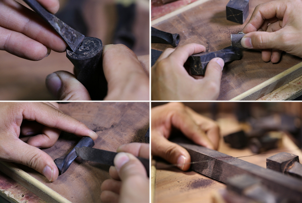 紫檀は全て昔ながらの手作業で、職人がひとつひとつ加工しています。