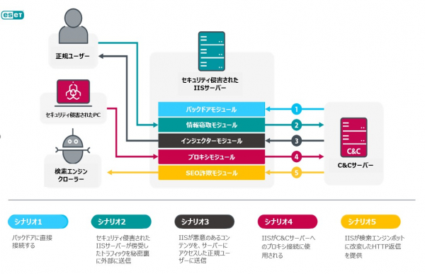 ESETは、IISマルウェアが動作する5つの主なモードを特定しました。