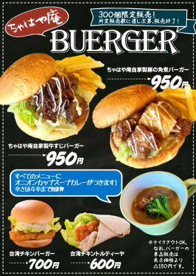 有限会社マジカルエッグ(本社:東京都足立区、代表取締役:?山昌之)が運営する墨田区で唯一のスープカレー専門店の『お江戸スープカレーちゃはや庵』(所在地:東京都墨田区)は8月23日(月)から、スープカレーとバーガーをコラボさせた新商品4種合計300個を期間限定で発売します。「ちゃはや庵バーガー4種とオニオンカップスープカレーのセット」4種です。リーズナブルな価格を実現し、8月31日(火)まで提供いたします。※期間内でも300個に達した時点で販売終了となります。