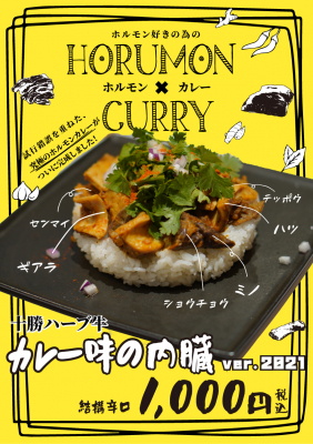 当店は「神田カレーグランプリ2021」(主催:神田カレー街活性化委員会)が実施する「神田カレー街食べ歩きスタンプラリー2021」(21年9月1日〜22年1月15日)に、昨年に引き続き、本メニューで参加いたします。今回の新作メニューの提供、本イベントへの参加を通じて、ホルモン焼肉の愛好家のほか、カレー愛好家の皆さまに対して、十勝ハーブ牛ホルモンのおいしさを広く訴求してまいります。