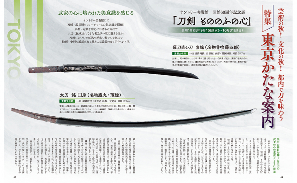 芸術の秋!文化の秋!ということで、サントリー美術館で9月15日から特別展示がはじまっている「刀剣 もののふの心」展を中心に、東京で観賞できる刀剣たちをたっぷり紹介します。