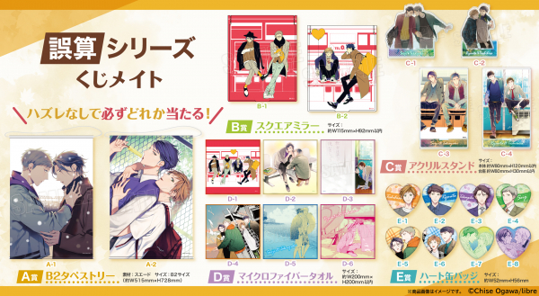 アニメイト通販「くじメイト」から緒川千世先生の大人気BL作品『誤算シリーズ』のオンラインくじが登場!美麗イラストを多数使用した景品は必見です♪