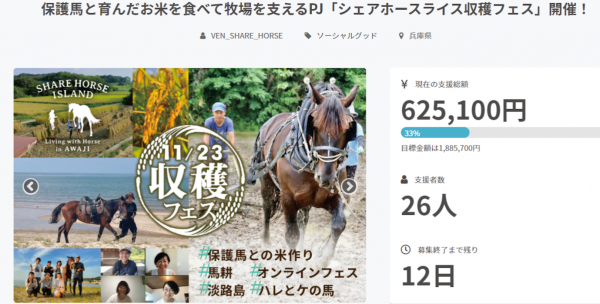 シェアホースアイランドは2021年10月14日〜11月10日までクラウドファンディングを実施しています。