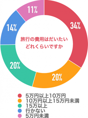 「5万円以上10万円」が34%、「10万円以上15万円未満」は20%、「15万以上」が20%、「行かない」が14%、「5万円未満」が11%という回答でした。