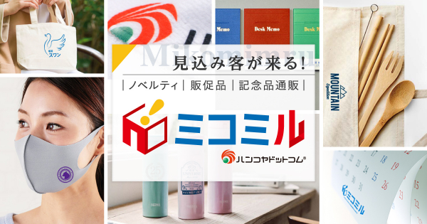 株式会社ハンコヤドットコム(代表取締役 藤田 優 本社:大阪府大阪市、以下 ハンコヤドットコム URL: https://www.hankoya.com/)は、2021年11月24日に、お客様の販促活動を支援する販促品・ノベルティを小ロットから作成できる通販サイト「ミコミル」をリリースしました。