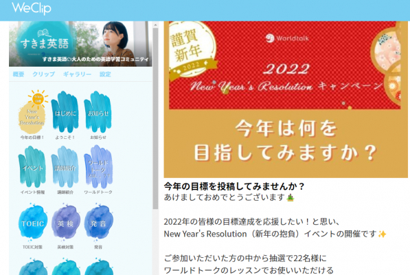 ※なお、コミュニティでの投稿には、「WeClip」のアカウント作成と、すきま英語コミュニティのフォローが必要です。