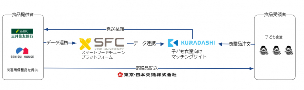 また、子ども食堂※3への食品提供企業として、積水ハウス株式会社(本社:大阪府大阪市、代表取締役 社長執行役員 兼 CEO:仲井嘉浩、以下「積水ハウス」)、株式会社三井住友銀行(本社:東京都千代田区、頭取CEO:?島誠、以下「三井住友銀行」)、子ども食堂への配送担当企業として、東京・日本交通株式会社(本部:大阪市福島区、代表取締役:金田隆司、以下「東京・日本交通」)と連携し行います。