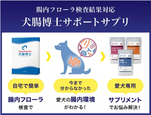 「肥満・アトピー・ストレス」ペットの腸内細菌がカギ 腸内フローラ検査【犬腸博士(わんちょうはかせ)】 結果対応サプリメントが楽天市場で販売開始