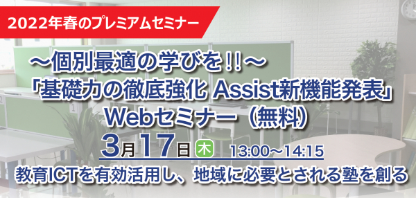 【3/17(木)開催】 〜個別最適の学びを!!〜 『基礎力の徹底強化 Assist新機能発表』Web セミナー(無料)