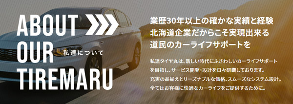 タイヤ丸を運営する『株式会社 海』は、北海道を拠点に車関連業に30年以上携わる、いわば車のプロ集団。特に、季節ごとのタイヤの履き替えなど寒冷地の路面に関して優れたノウハウを持っています。深い知識と経験に基づき、お客様の快適なカーライフを日々サポートいたします。