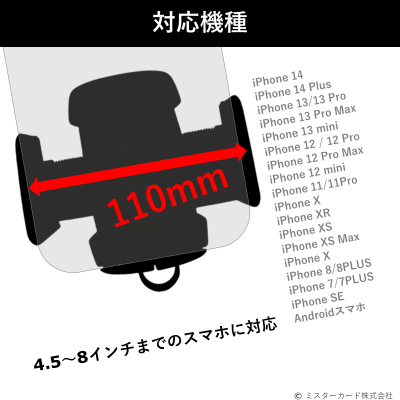 ◎ 最大幅約11cmまで開き、4.5〜8インチまでのスマホに対応