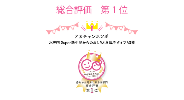 『コズレみんなのクチコミアワード2022』赤ちゃん用おしりふき部門を発表! 総合評価第1位は「株式会社赤ちゃん本舗 水99% Super 新生児からのおしりふき 厚手タイプ 60枚」