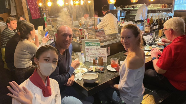 KUURAKU GROUPでは都内店舗を中心にコロナ前からインバウンド集客に成功しており、コロナ禍でほぼゼロになっていましたが10月の規制緩和以降インバウンド客が戻り、11月のインバウンド来客数は2019年比96%にまで回復。その結果10月、11月と過去最高月商を達成する店が続出するなど急激に業績が改善している。12月度はコロナ前を超える(2019年比118%)ペースでインバウンド客の来店が続いている。中国の更なるコロナ対策の規制緩和も発表されているため更に来店が期待される。(写真: インバウンド客比率が6割を超える『串焼ビストロ福みみ 銀座店』)