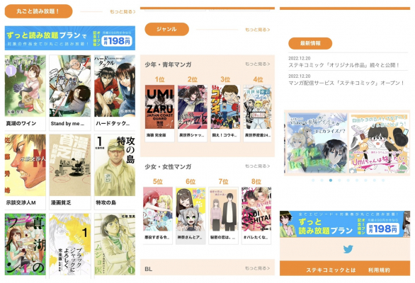 マンガ配信サービス『ステキコミック』が2022年12月26日オープン! 冒頭無料・1日1話無料に加え、読み放題プランがオープニング価格198円でスタート!!