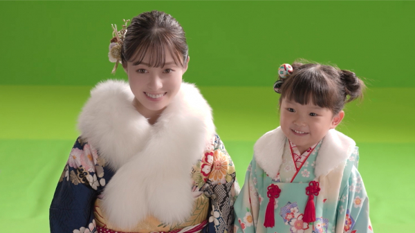 当社イメージキャラクターの橋本環奈さん、村方乃々佳ちゃんが揃って初詣に出かけて祈るシーンから始まります。