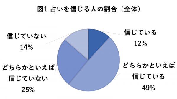 男性に限定すると占いを「信じている」「どちらかといえば信じている」と選択した方は52%。