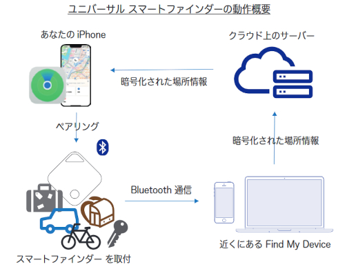 ユニバーサル・ビジネス・テクノロジーは、Bluetooth(R)5.0を利用してアイテムや車の置き場所をチェックしたり、無くしたアイテムを探すなど多彩な機能をプライバシーを気にせずお使いいただけるスマートタグ、ユニバーサル スマートファインダーを2023年4月より発売いたします。