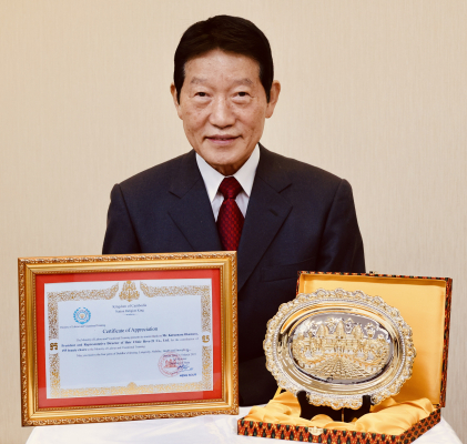 正真正銘自分の髪 リーブ21 (本社:大阪市中央区、代表取締役社長:岡村勝正、以下「リーブ21」) は、3月21日(火)カンボジア政府主催の表彰式において、国立美容技能研究所等で使用される日本製の美容椅子155脚を寄贈したことに対し、HENG国務副大臣から表彰されました。