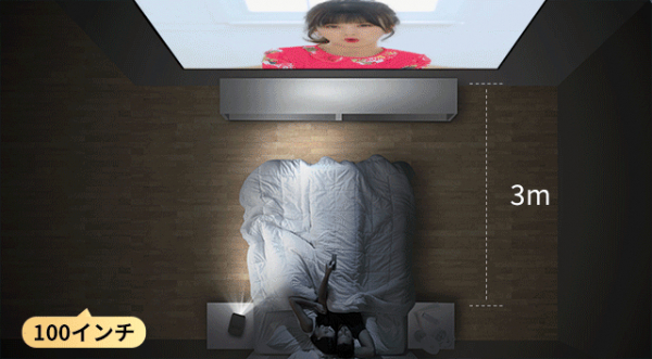 台形補正機能が搭載されています。斜め横の位置から投影しても、画面の四隅が自動的に調整して、見やすい四角形に補正できます。