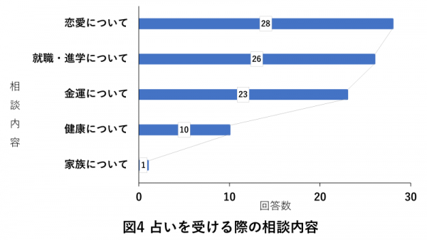 男子学生においては「恋愛について」相談したいとの回答が最も多いものの、回答数に関しては「就職・進学について」「金運について」と僅差。