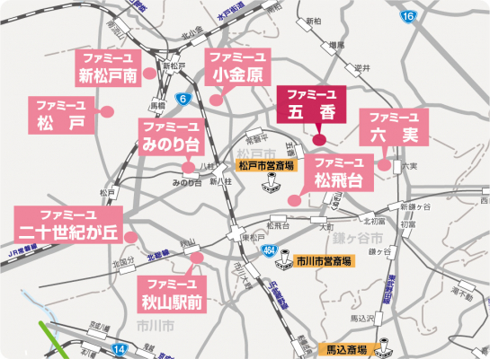 (画像)松戸市内に合計9店舗を展開。葬祭ホールとしては家族葬のファミーユが市内最多。