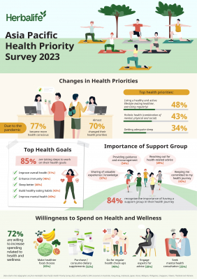 香港、2023年5月25日 /PRNewswire/ -- Herbalife Asia Pacificは、2023年5月24日に、「Asia Pacific Health Priority Survey」の調査結果を発表しました。