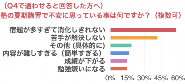 ・塾の夏期講習で不安に思っている事は何ですか?(複数可)