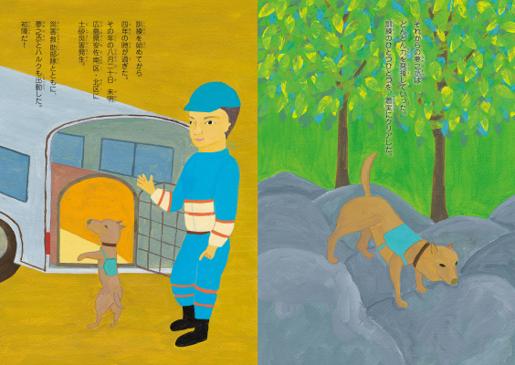 臆病で弱虫だった夢之丞が、災害救助犬として成長し、人の命を救うようになるまでの奇跡のようなストーリーを、温かみのあるイラストで描きます。