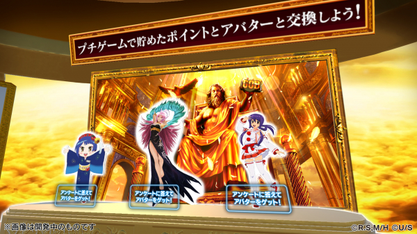 今回のプチゲームはリールを停止するボタンが設けられており、自分のタイミングでリールを停止することが可能なため、遊技機さながらのプレイを楽しめます。リール停止時の出目に応じて獲得ポイントが変動し、GODが揃うと大量獲得のチャンス!?貯めたポイントは3Dアバターと交換することができます。3Dアバターは複数ご用意しておりますので、奮ってご参加ください。