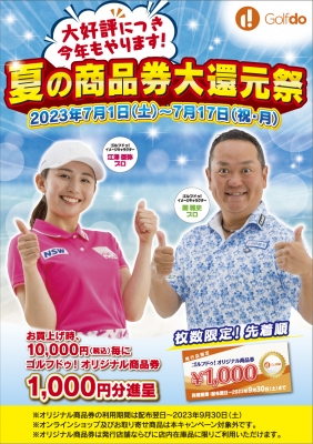 ゴルフドゥ!全国76店舗にて海の日までの限定開催決定!「大好評につき今年もやります!夏の商品券大還元祭」