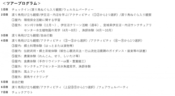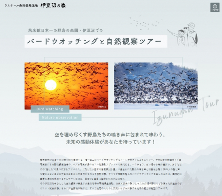 食農体験ネットワーク登米協議会 ツアー事務局では、飛来数日本一を誇る野鳥の楽園、伊豆沼を中心とした「ラムサール条約登録湿地 伊豆沼の旅 バードウオッチングと自然観察ツアー」を企画し、そのホームページを2023年9月に公開しました(https://izunuma-travel.com/)。また、同ツアー参加者の申込受付を10月1日から開始いたします。