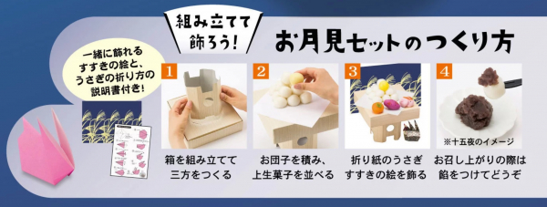 名月愛でる「十五夜」を現代風に楽しむ 手作りキット付き和菓子 箱を組み立てると三方になる『家族でつくるお月見セット』 社名にちなんだ日本の風習の啓発にも寄与 9月1日より