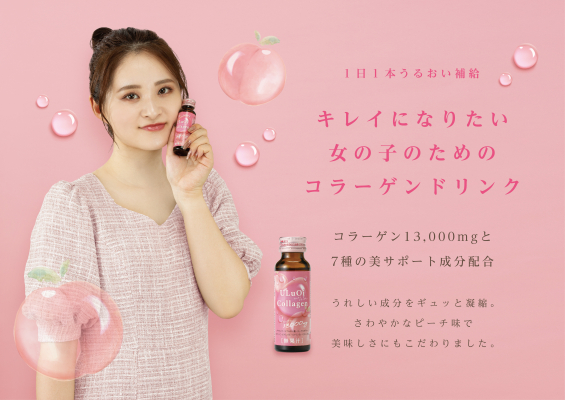 こだわりは何と言っても13,000mgも入っているコラーゲン。一般的に美容や健康に効果が期待できる一日あたりの摂取目安が5,000〜10,000mgとされている中、この数値は圧倒的な量。1本で満足いただけるよう、コラーゲンをたっぷり配合した結果です。さらに味にもこだわりました。コラーゲンはどうしても素材特有の臭いで飲みにくくなってしまいます。様々なコラーゲンドリンクを購入して飲み比べ、ピーチ味が一番飲みやすくお客様にとっても味の想像がしやすいため、フレーバーはピーチを採用。程よい酸味を効かせることで、すっきり爽やかな飲み口になっています。また、コラーゲンの他にプラセンタやヒアルロン酸、ローヤルゼリー、ビタミンC、ビタミンB1、ビタミンB2、ビタミンB6といった美容に嬉しい素材も配合し、商品1本で1日分のビタミンC、ビタミンB1、ビタミンB2、ビタミンB6を摂取することができます(※)。お財布にやさしい価格設定にし毎日の続けやすさにも配慮。内からのキレイをサポートしたいと考えています。(食品開発担当 米屋(よねや))