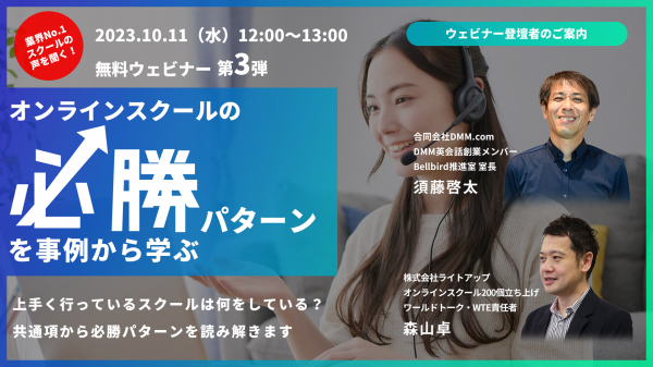 【共同開催】10/11(水)12:00〜 ライトアップとDMM共催セミナー第3弾!オンラインスクール必勝パターンを事例から学ぶ(無料ウェビナー)