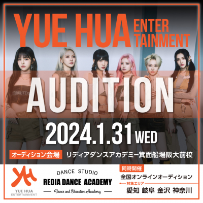 YUE HUA Entertainmentは、EVERGLOW、TEMPESTといったK-POPアーティストが多数所属している中国・韓国に拠点を置く多国籍芸能事務所です。この度リディアダンスアカデミーを通じて日本の人材を発掘するために人材推薦の提案をいただき、今回のオーディション開催が実現しました。オーディションはオフラインに加えオンラインでも開催されるため、全国からの参加が可能です。