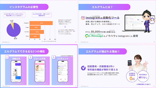 サービス資料では、インスタやエルグラムについて下記のことがわかります。