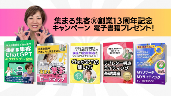 個人起業家のWEBマーケティングと人財教育 『集まる集客(R)』を手掛ける、株式会社アクティブノート(東京都調布市、代表取締役社長:長瀬葉弓)は、2024年1月31日の創業13周年を記念して、2024年2月15日まで『集まる集客(R)電子書籍5冊セット』プレゼントキャンペーンを実施します。