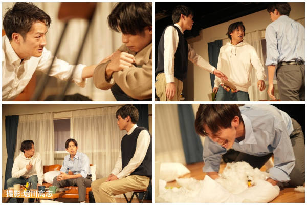 本作の登場人物は3人ですが、それぞれの役に2人の俳優を配し、上演回ごとにどちらか1人が演じます。