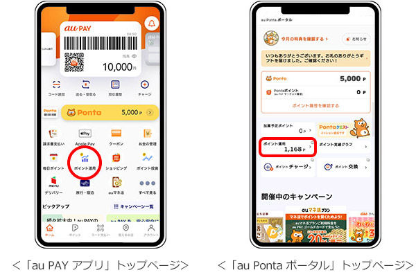 「au PAY ポイント運用」はau PAY アプリからのご利用が便利です。また、「au Ponta ポータル」のトップページからも簡単にご利用いただけます。