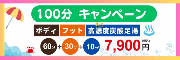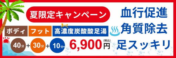 ボディ40分+フット30分+高濃度炭酸足湯10分でなんと!!6,900円
