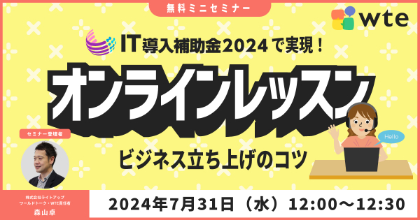 【7/31(水)】IT導入補助金で実現!オンラインレッスンビジネス立ち上げのコツ(ライトアップ ミニセミナー)